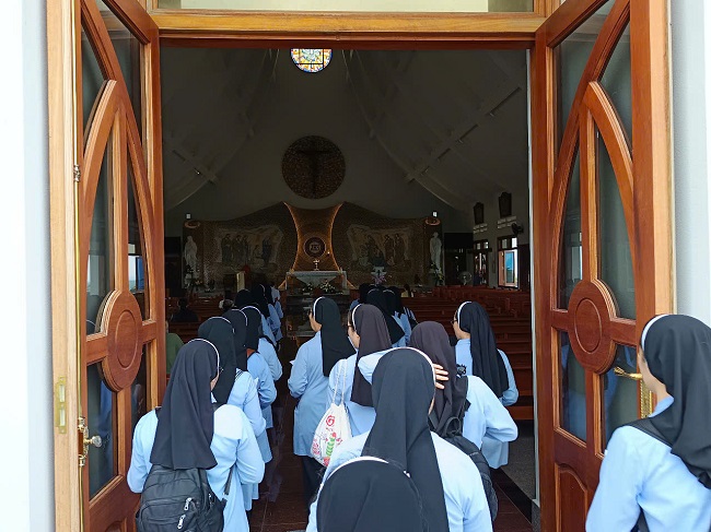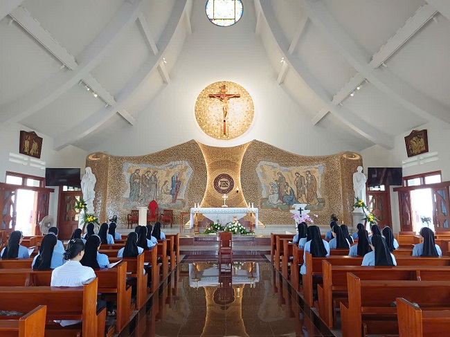 Trong bầu khí hân hoan phấn khởi ra đi hành hương trong Năm Thánh của niềm Hy vọng. Hôm thứ bảy ngày 5 tháng 7 năm 2025. Lúc 4h30 sáng, hai mươi tám chị em trong cộng đoàn Gò vấp cùng nhau hành hương về Núi Cúi bên Mẹ Maria dấu yêu. Đây cũng là ngày tĩnh tâm tháng của chị em trong cộng đoàn, chị em cùng nhau khai mạc nghi thức hành hương bên chân Mẹ Núi Cúi, sau chương trình hành hương, chị em được một giờ lặng quỳ trước Thánh Thể Chúa để chiêm ngắm Tình yêu của Chúa. Kế đến cùng nhau lãnh nhận Bí Tích Hòa Giải và tiếp theo là tham dự bàn tiệc Thánh Thể qua Thánh lễ. Những giờ phút ngắn ngủi của ngày tĩnh tâm và hành hương bên Mẹ thật tràn đầy ý nghĩa cho mỗi một chị em khi quay về lại cộng đoàn. Nghỉ ngơi trong Chúa trong ngày tĩnh tâm lại được tiếp thêm năng lượng mới, thêm nhiệt huyết, lửa hăng say để tiếp tục vui sống và làm lan tỏa niềm vui Tin Mừng của Chúa cho nhiều người.