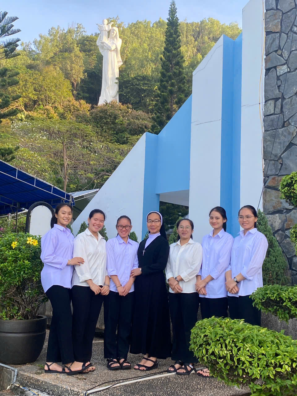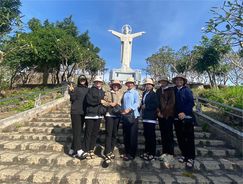 Lên Núi Tao Phùng – nơi tượng Chúa Kitô Vua sừng sững giữa trời – tôi trải nghiệm một cảm xúc hòa lẫn giữa sợ hãi và ngưỡng mộ. Những bậc thang dốc cao như thách thức tôi, bộc lộ rõ mệt mỏi và giới hạn bản thân. Tôi hiểu đó cũng là hình ảnh của ơn gọi: không bằng phẳng, có lúc khó khăn, mỏi mệt và sợ hãi. Nhưng từng bước nặng nhọc ấy cũng là lời mời gọi tôi thinh lặng cầu nguyện, dâng lên Chúa những băn khoăn và lo lắng. Khi đứng trước tượng Chúa với vòng tay mở rộng, tôi cảm nhận rõ sự bao dung đang ôm lấy mình – một tình yêu không phán xét, chỉ kiên nhẫn và trìu mến. Tôi thầm thưa: “Lạy Chúa, con yếu đuối nhưng con muốn thuộc về Chúa. Xin cho con can đảm bước theo Ngài, ngay cả khi con chưa hiểu hết con đường trước mặt.”