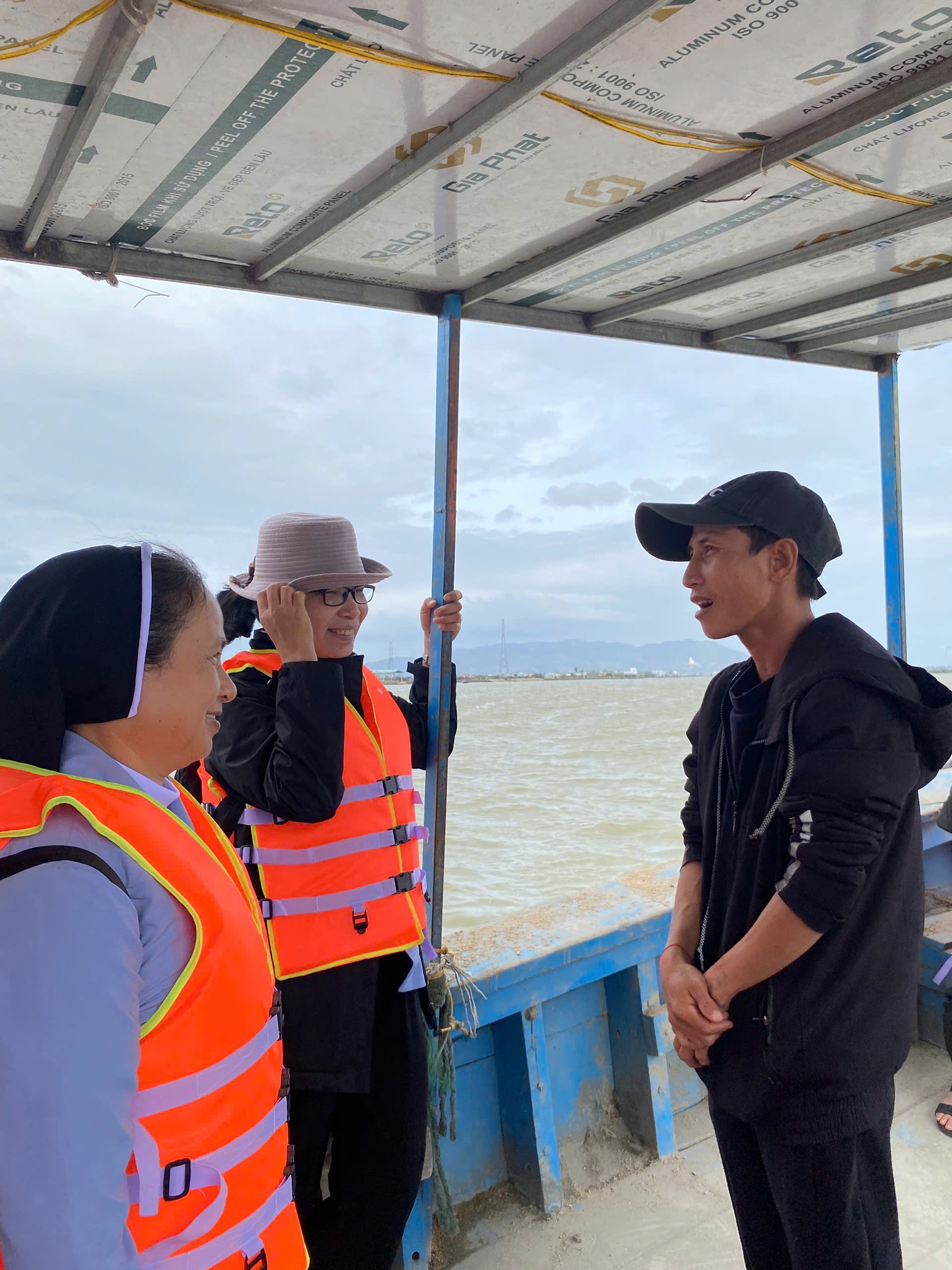 Buổi sáng, đoàn tìm đến Giáo họ Tư Thanh, giáo xứ Vĩnh Thạnh, nơi nhiều gia đình đang gồng mình tìm lại sự bình yên sau bão. Tiếp đến là ốc đảo Cồn Chim, vùng đất vốn mong manh trước thiên tai nhưng kiên cường trong nghị lực sống. Ở mỗi nơi đến, đoàn đã đem theo những phần quà hỗ trợ và trao tặng một ít vốn liếng nhỏ tùy theo hoàn cảnh, để bà con có thể mua sắm những nhu yếu phẩm cần thiết cho cuộc sống hiện tại.