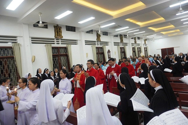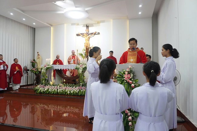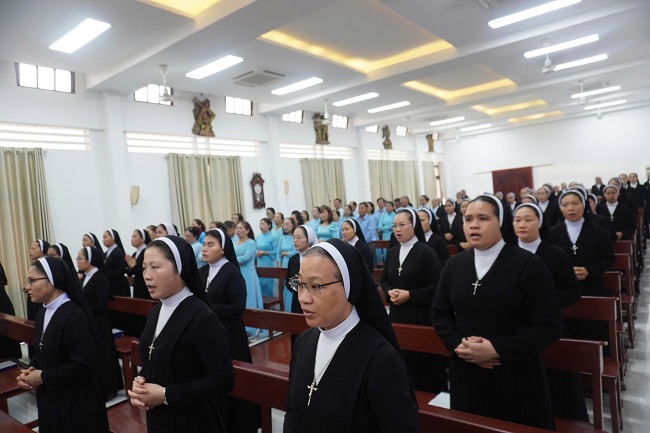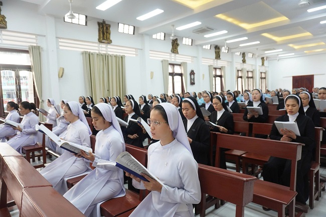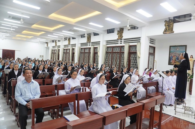Cuối bài giảng, Đức cha nhắn nhủ các chị em Mến Thánh Giá sống Mầu nhiệm Thập Giá qua 3 lời khấn: Khiết tịnh, Vâng phục, Khó nghèo: