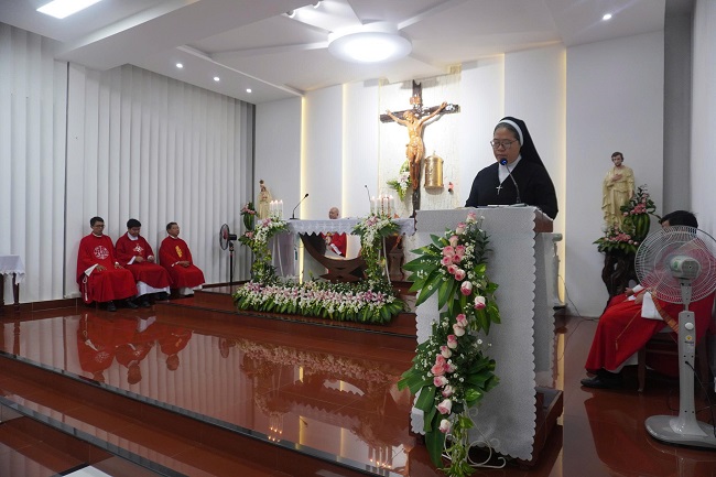 Tiếp lời, Đức cha Matthêô có lời chúc mừng đến Hội dòng, ước mong Hội dòng ngày phát triển về mọi phương diện để phục vụ Giáo hội cách tốt hơn.