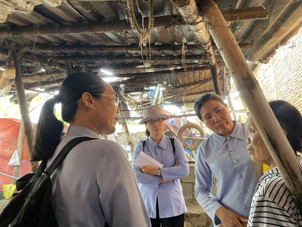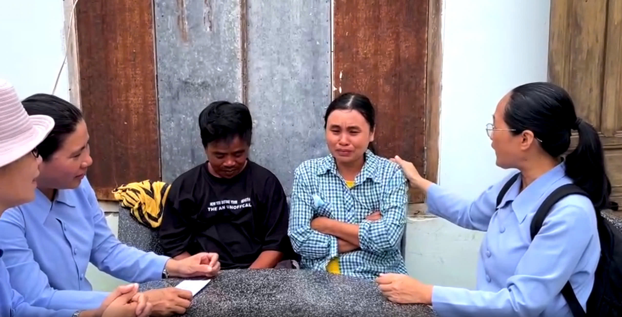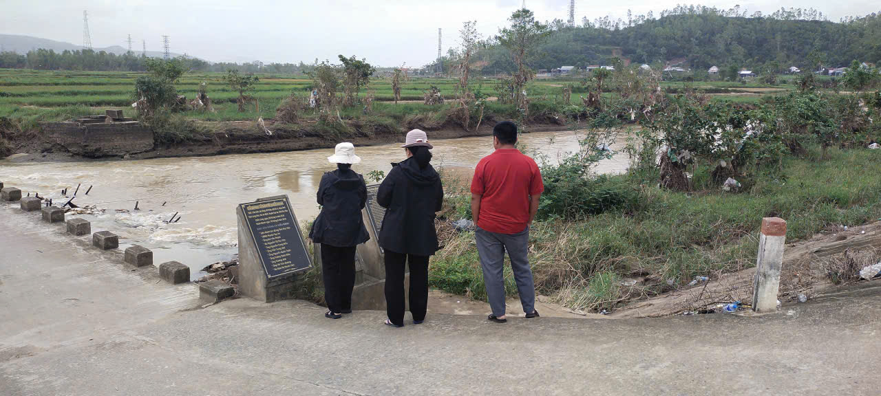 Sau Thánh Lễ sáng Chúa Nhật 14/12/2025, các chị em Dòng Mến Thánh Giá Qui Nhơn mang trong tim niềm vui muốn trao gởi, không điều kiện, lên đường men theo quốc lộ 1A, đến cầu Ngân Sơn (Tuy An) và rẽ phải đến thôn Long Hoà, xã An Định, huyện Tuy An, tỉnh Phú Yên (cũ). Chị em muốn đi sâu vào trong thôn để thăm hỏi, lắng nghe bà con chia sẻ về những nỗi niềm sau cơn bão lũ kinh hoàng vừa qua, sau khi đã có dịp được chia sẻ với họ những phần quà yêu thương vào những ngày trước đó. Trên đường đi chị em gặp chị Hồng (người dân trong thôn đang đi tìm rau về nấu cho bò), được chị và một vài người dân trong thôn trò chuyện và chia sẻ tình hình trong thôn: các đoàn cứu trợ, những thiệt hại về nhà cửa, mất mát tài sản, hoa màu, vật nuôi, cây trồng…, nhất là những gia đình có người thân bị thiệt mạng vì bị nước cuốn trôi và sạt lở, đất đá đè chết người… Những lời hỏi thăm ân cần của chị em, giây phút lắng nghe chia sẻ dù họ không biết chị em là ai, nhưng trong thái độ ân cần không dè dặt, thân thiện và gần gũi của cả đôi bên khiến khoảng cách về ngôn ngữ, vùng miền, tôn giáo được rút ngắn, dường như mọi người đã quen nhau từ lúc nào. Tuy không giúp cho người dân nhiều về vật chất, nhưng chính sự hiện diện, thăm hỏi, lắng nghe cũng như lời hứa cầu nguyện của chị em, đã phần nào là nguồn khích lệ, động viên cho anh chị em vượt qua sợ hãi và đau buồn.