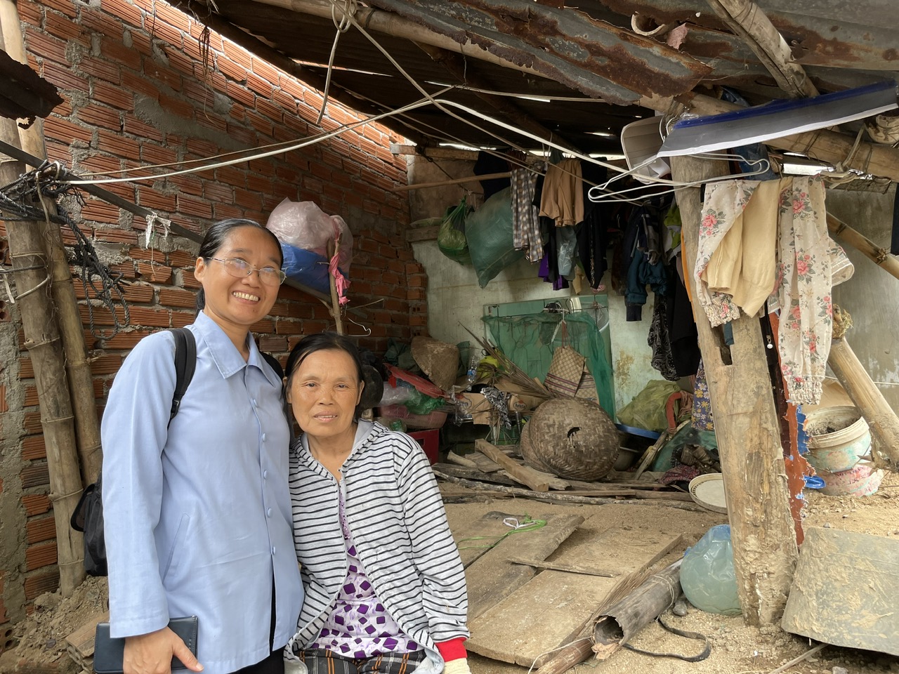 Khoảng 9g15, từng hai chị em trên chiếc xe máy để đến thăm và chuyển trao phần quà yêu thương từ cha Gioan Baotixita Phương Đình Toại - Dòng Camillo, để giúp cho hai hộ gia đình thuộc thôn Hà Yến, xã An Thạch (nay là Tuy An Đông) thuộc Giáo xứ Chợ Mới – Giáo phận Qui Nhơn, được xây mới nhà vệ sinh – nhà tắm. Phần hỗ trợ là 30 triệu đồng/ hộ gia đình, đồng thời nhờ nữ tu Maria Mađalêna Nguyễn Thị Danh, đang phục vụ tại Cộng đoàn Hà Yến – Giáo xứ Chợ Mới và Giáo xứ Đồng Cháy, giúp đồng hành với hai hộ gia đình này xúc tiến việc xây dựng, sớm hoàn thành để sử dụng: