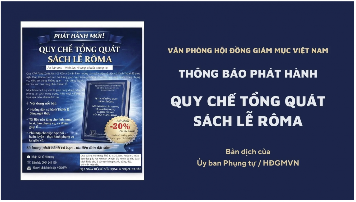 Số điện thoại liên hệ: 0904 241160 (Lễ tân Văn phòng HĐGM)