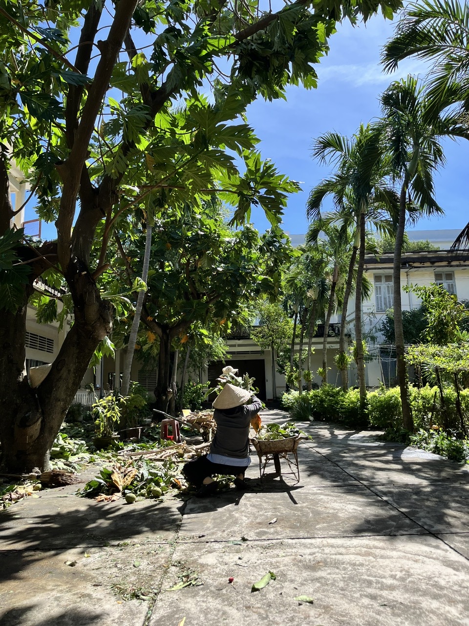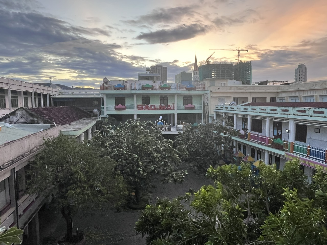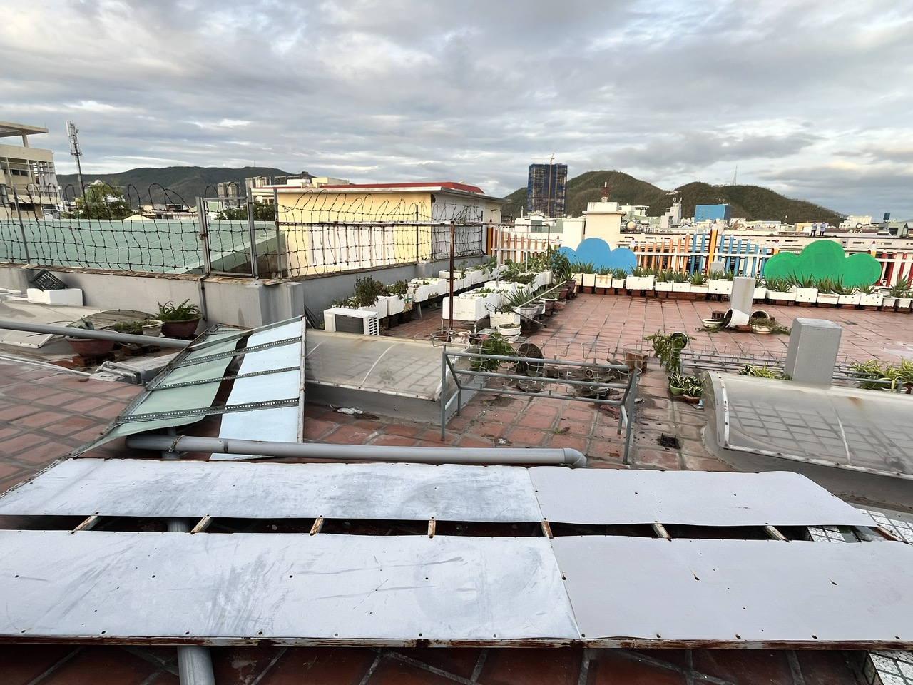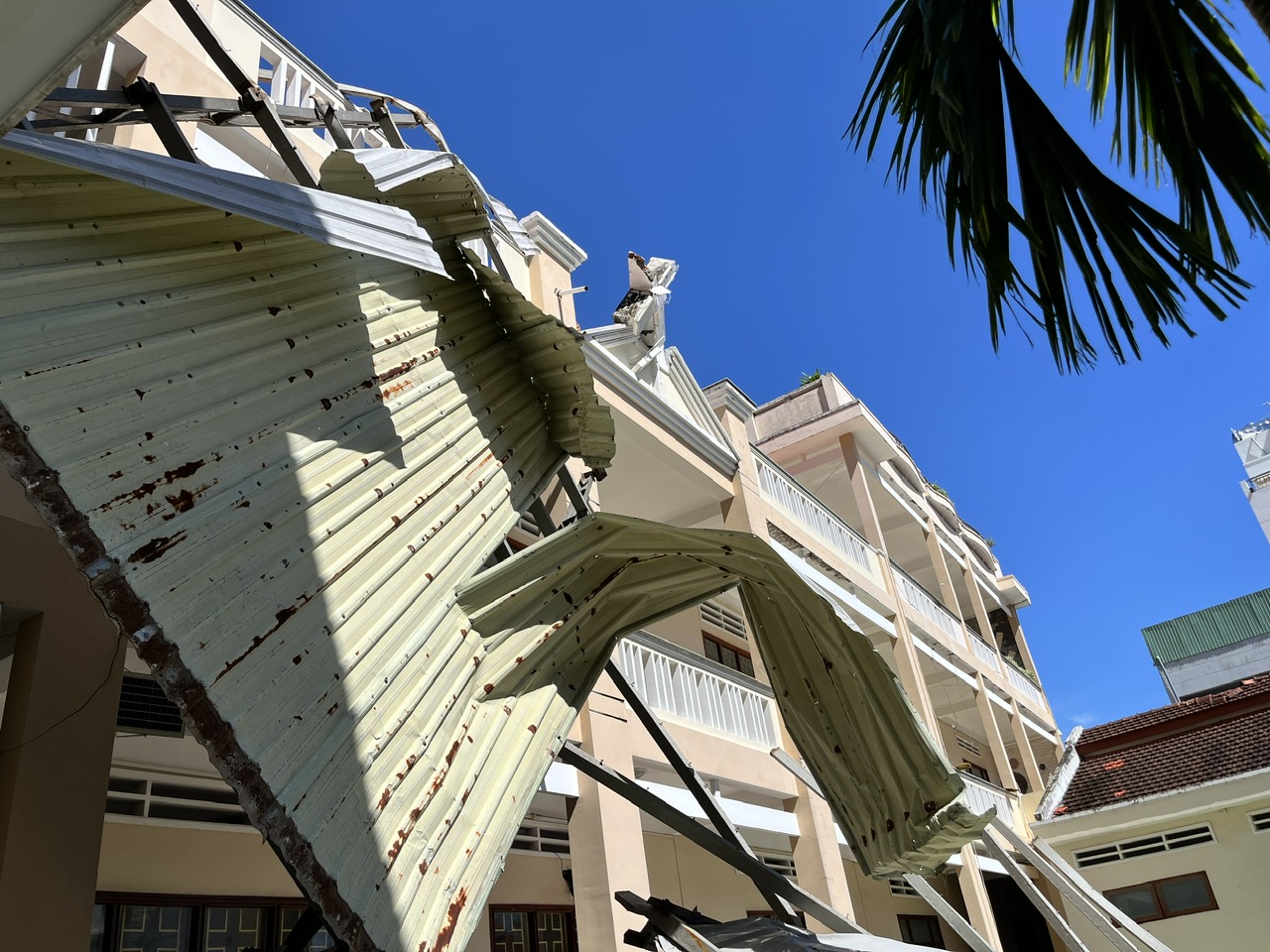 Khu vực trường Mầm non Sao Mai, sức gió mạnh luồn vào lớp Mầm 4 làm rơi máy lạnh, cửa kính vỡ, vách ngăn giữa nhà vệ sinh và lớp học sập hoàn toàn. Một số phòng học khác các cửa kính bị vỡ nhiều. Các cây xanh và cảnh quan sân trường trở nên hoang tàn sau cơn bão.
