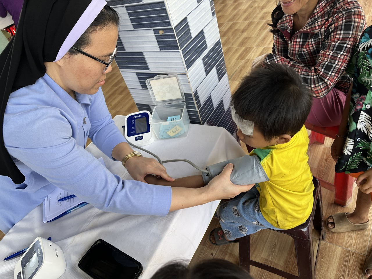Sáng thứ Bảy, ngày 15/11/2025, từ lúc 8g30 – 15g00, tại Nhà thờ Giáo xứ Vườn Vông, cha Sở và Hội đồng Giáo xứ đã tổ chức buổi đón đoàn thiện nguyện về thăm khám, lắng nghe và phát thuốc miễn phí cho nhiều bà con trong giáo xứ với nguồn tài trợ của quý ân nhân qua trung gian quý bác sĩ thiện nguyện và các soeurs có chuyên môn Y tế thuộc Hội dòng Mến Thánh Giá Qui Nhơn.