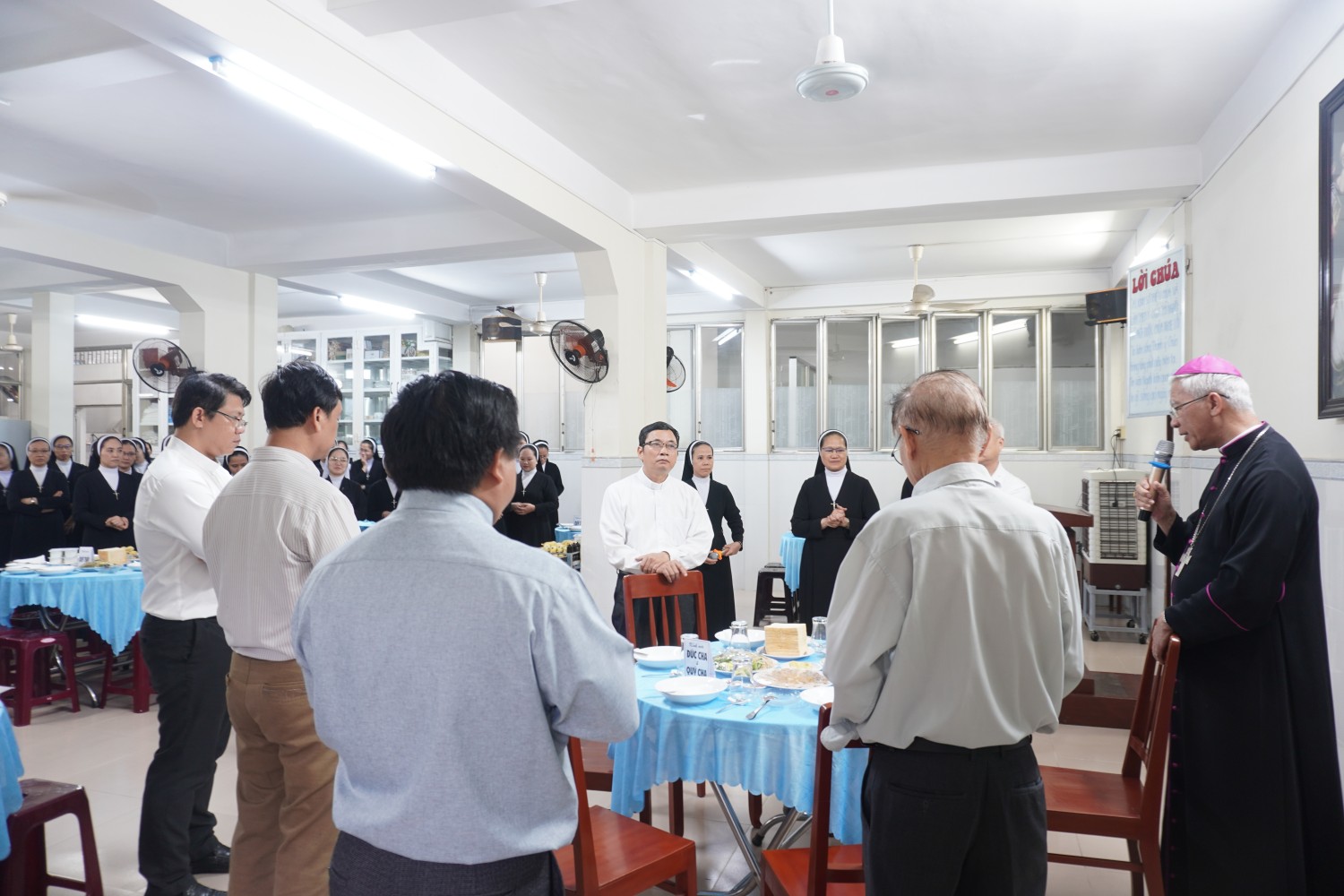 Sau lời cám ơn của chị Tổng Phụ trách, Đức cha Matthêô cũng cũng có lời chúc mừng Hội dòng trong ngày mừng bổn mạng. Đức cha cũng cầu chúc Hội dòng ngày một phát triển, bình an và có thêm nhiều ơn gọi để phục vụ Giáo hội.