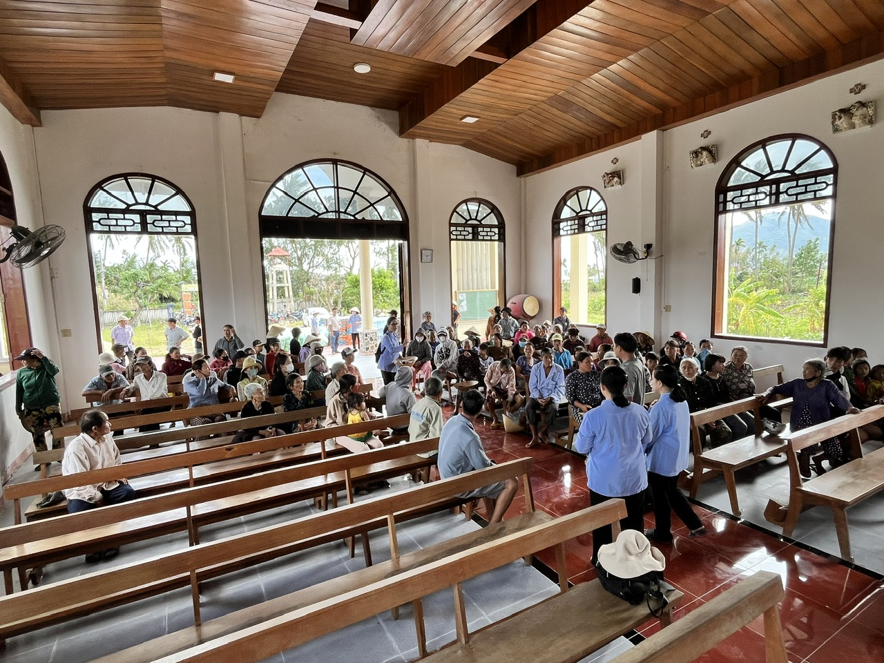 Cha sở và quý Chức việc giáo họ biệt lập An Mỹ đã quy tụ các gia đình đang trong hoàn cảnh khó khăn đến và cấp phát quà tại Nhà thờ. Trên những gương mặt vốn đã hao gầy vì sương gió của các ông bà, cô chú nay lại thêm phần hốc hác, hao mòn bởi cái túng thiếu, cơ cực mà cơn bão gây ra. Tuy nhận được từ các ân nhân xa gần dù chỉ là lốc nước, thùng mì, bao gạo… Một chút thôi, nhưng trong lúc này đã trở nên quý giá đối với người dân nơi đây biết chừng nào!