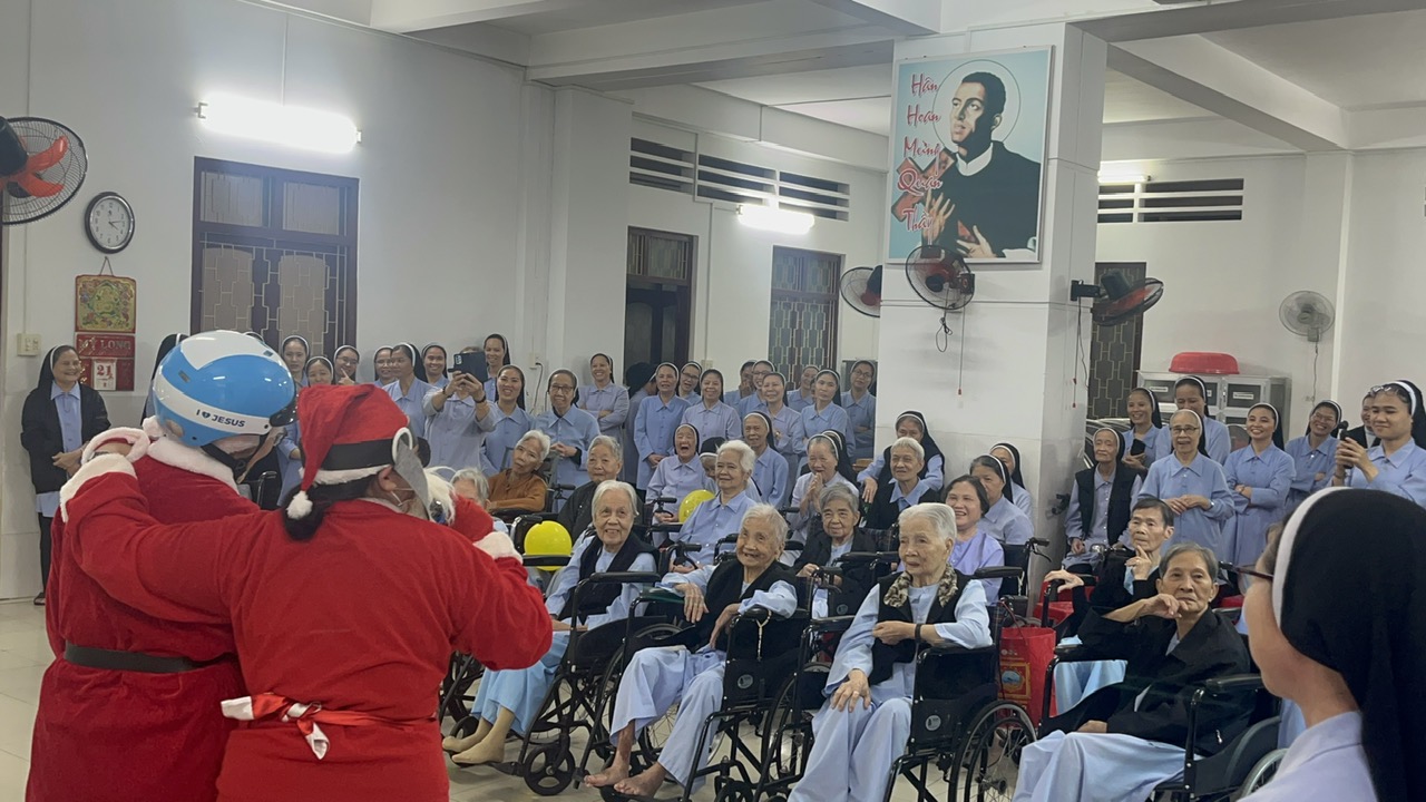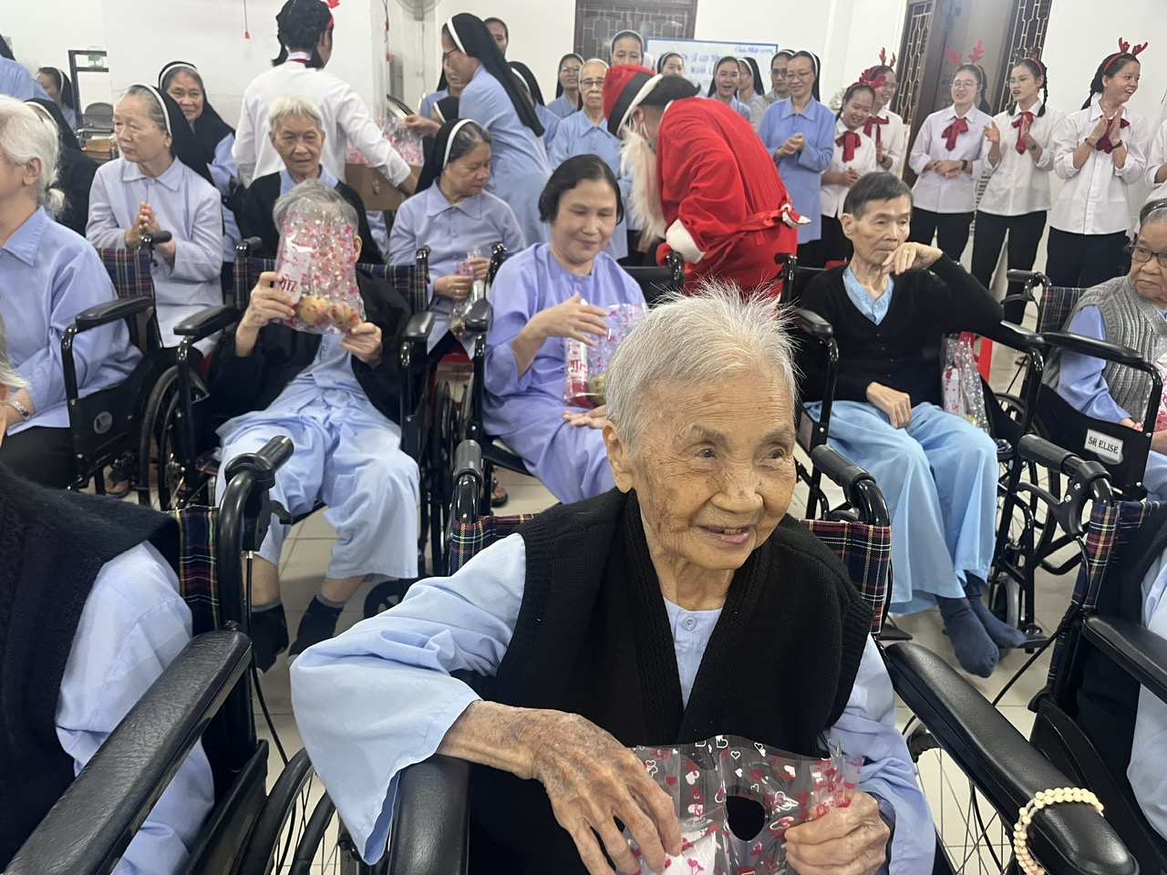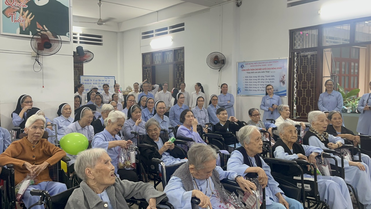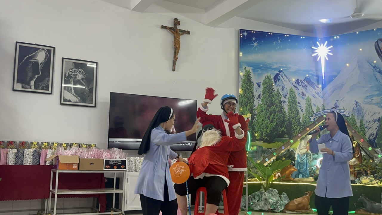 Chiều Chúa Nhật 21/12/2025,  sau giờ kinh chiều, chị em Khấn sinh cộng đoàn Nhà Mẹ cùng các em Thanh tuyển, Tiền tập, Tập sinh và quý chị trong Ban Điều hành Hội dòng đến chia sẻ niềm vui Giáng Sinh với quý bà hưu dưỡng và quý chị em phục vụ tại cộng đoàn Ghềnh Ráng.