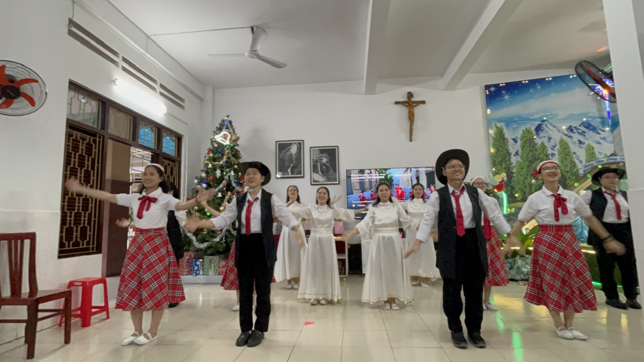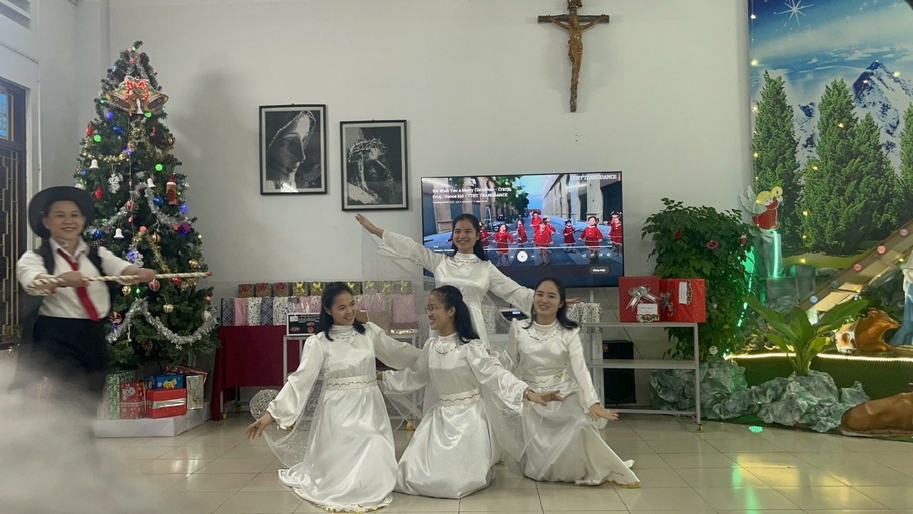 Tiếp đến là phần trình diễn của các em Tiền tập với những điệu vũ nhẹ nhàng, duyên dáng. Mỗi bước nhảy như một lời chúc bình an, một lời cảm ơn âm thầm gửi đến quý bà trong mùa Giáng Sinh yêu thương này.